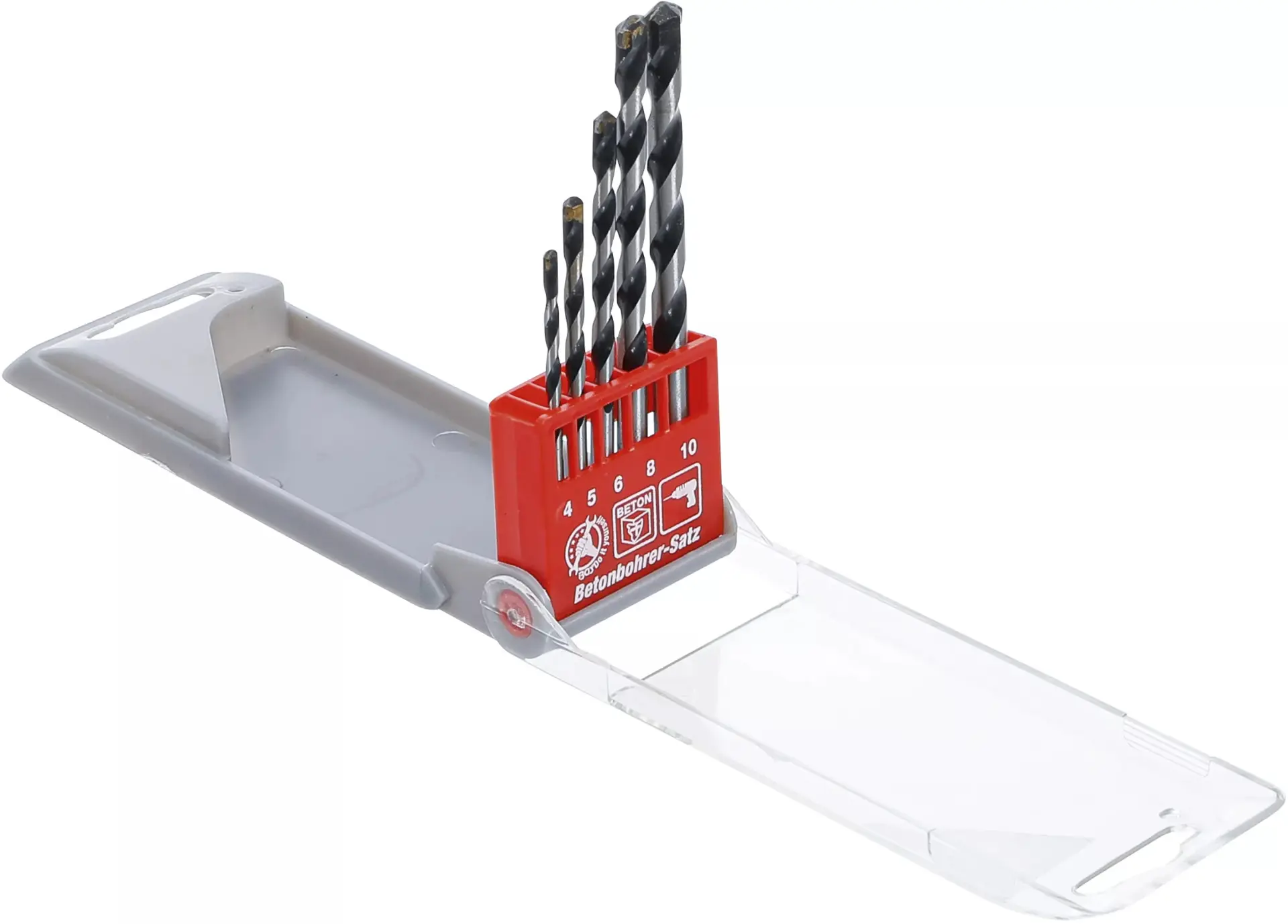 Sada pěti vrtáků do betonu Kraftmann 4–10 mm je uložena v praktické kazetě a vhodná pro běžné vrtací práce v domácnosti i dílně. Vrtáky mají válcové stopky a jsou určeny pro použití s příklepovými vrtačkami.