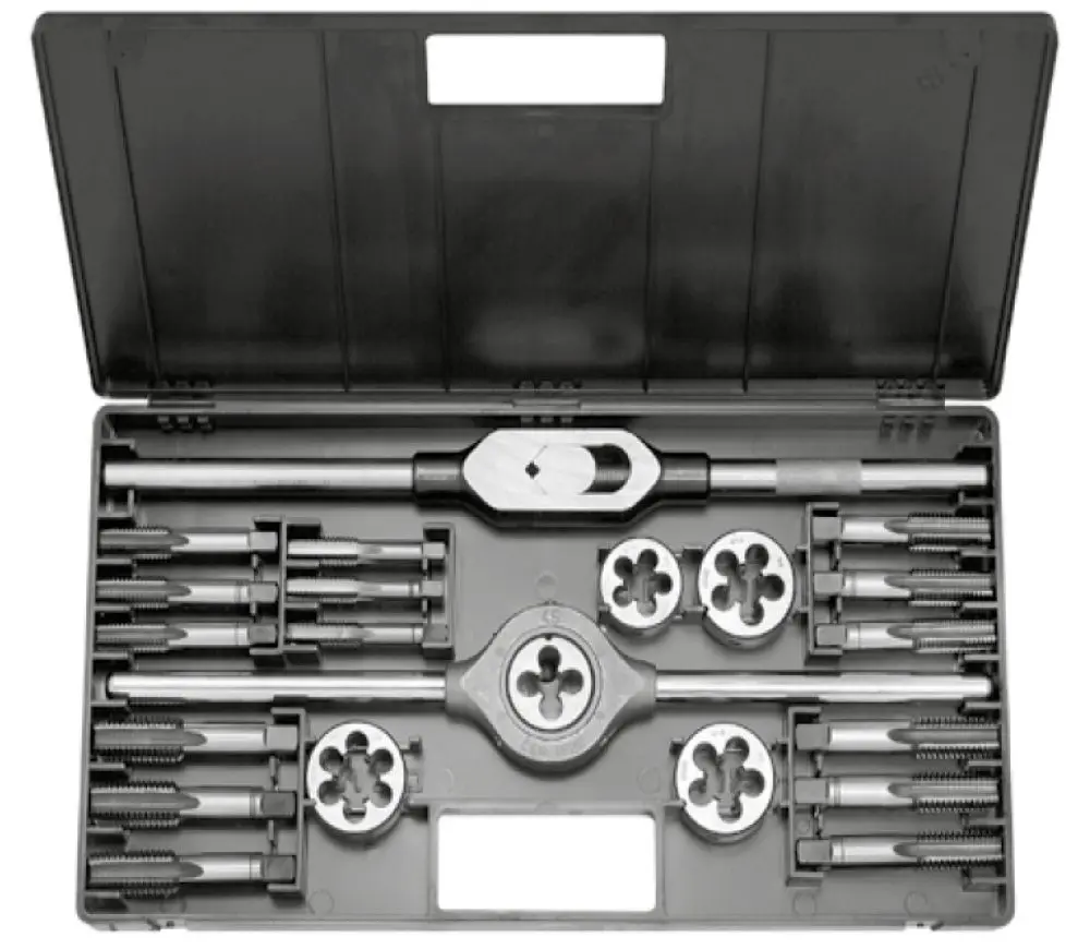 Sadovej závitníky pravé a závitové kruhové čeľuste. Prevedenie: Metrický závit