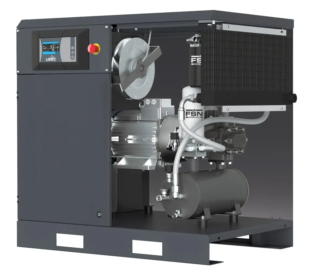 Kompresor je vybavený prehľadným ovládacím panelom, ktorý umožňuje jednoduché nastavenie a kontrolu prevádzkových parametrov. Vďaka integrovanému chladiču vzduchu je zabezpečená optimálna teplota počas prevádzky, čo prispieva k dlhšej životnosti zariadenia a stabilnému výkonu.
