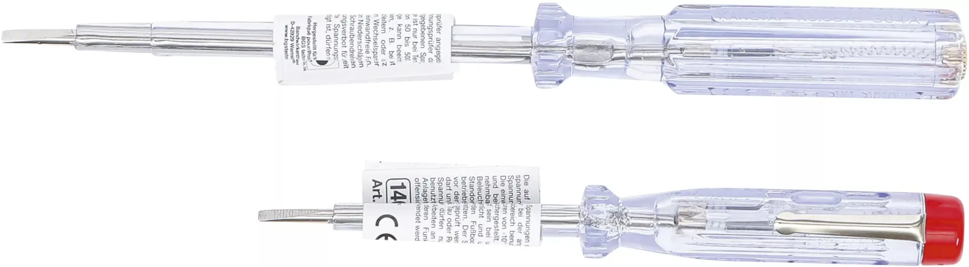 Sada dvou zkoušeček Kraftmann BGS100721 umožňuje rychlou kontrolu napětí v rozsahu 120 až 250 V, délky 140 a 190 mm usnadňují práci v různých podmínkách. Praktické provedení ocení každý, kdo potřebuje spolehlivě ověřit přítomnost napětí.