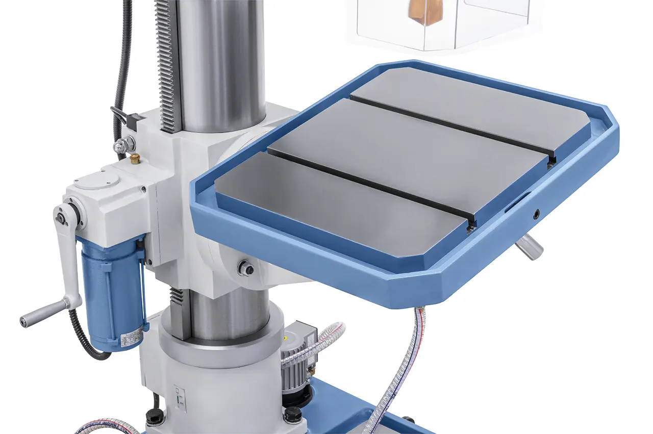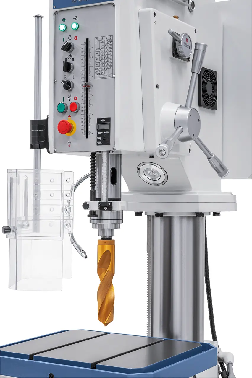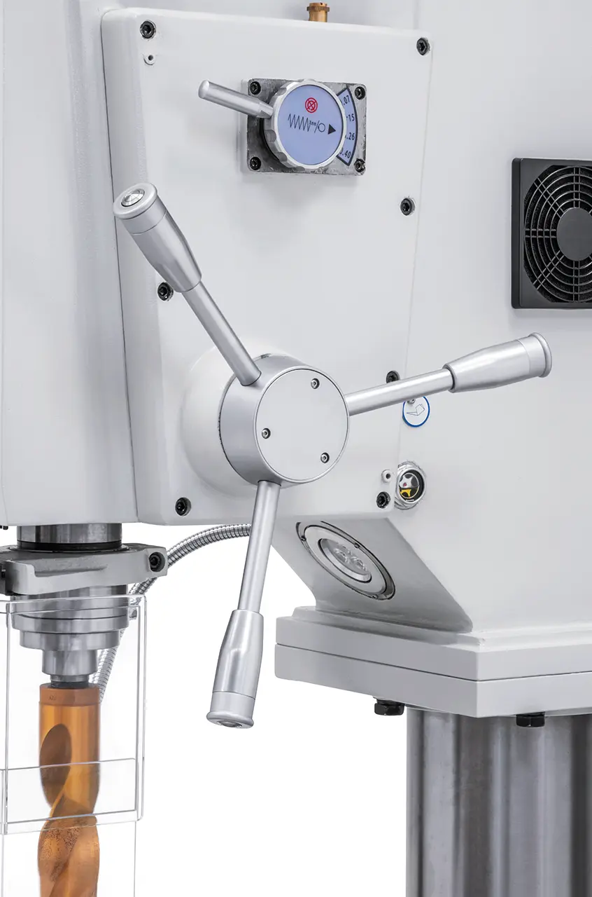 Těžká a robustní převodová sloupová vrtačka Vario s mechanickou převodovkou je standardně vybavena motorizovaným zvedáním stolu pro zkrácení prostojů.Díky robustní konstrukci a vysokému výkonu je tento model vhodný jak pro opravny,tak pro průmyslovou výrobu.