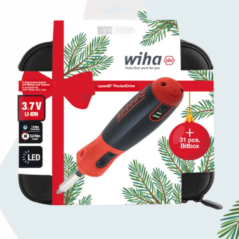 Elektrický šroubovák speedE® PocketDrive v limitované vánoční edici je určen pro rychlé a efektivní šroubování v domácnosti i dílně. Součástí balení je praktický box na nástavce a ochranné pouzdro, které usnadní přenášení i skladování nářadí. Díky kompaktním rozměrům se šroubovák pohodlně vejde do kapsy nebo brašny s nářadím.