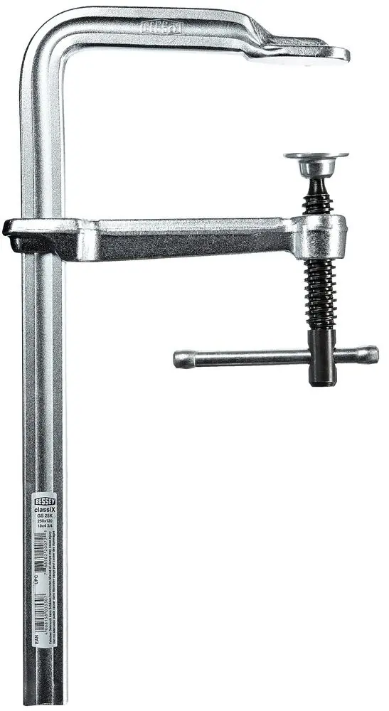 Ľahko ovládateľná celooceľová skrutková svorka Bessey ClassiX GS s kolíkovou rukoväťou a vysokou upínacie silou. Tvarovo stabilná a odolná proti prekrúteniu.