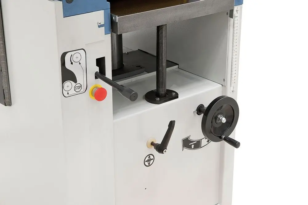 Ručné koliesko pre nastavenie presnej výšky (hrúbky) hobľovanie s delením 1/10 mm pre jednoduché nastavenie a prehľadné odčítanie požadované triesky pri hrúbkovania