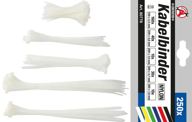 Viazacie pásky Kraftmann 100 ÷ 300 mm BGS1080778. Biele (Sada 250 dielov) (BGS1080778)