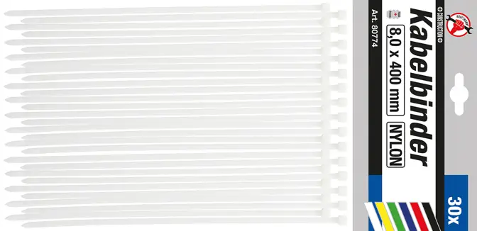 Viazacie pásky Kraftmann 8,0 x 400 mm BGS1080774. Biele (Sada 30 dielov) (BGS1080774)