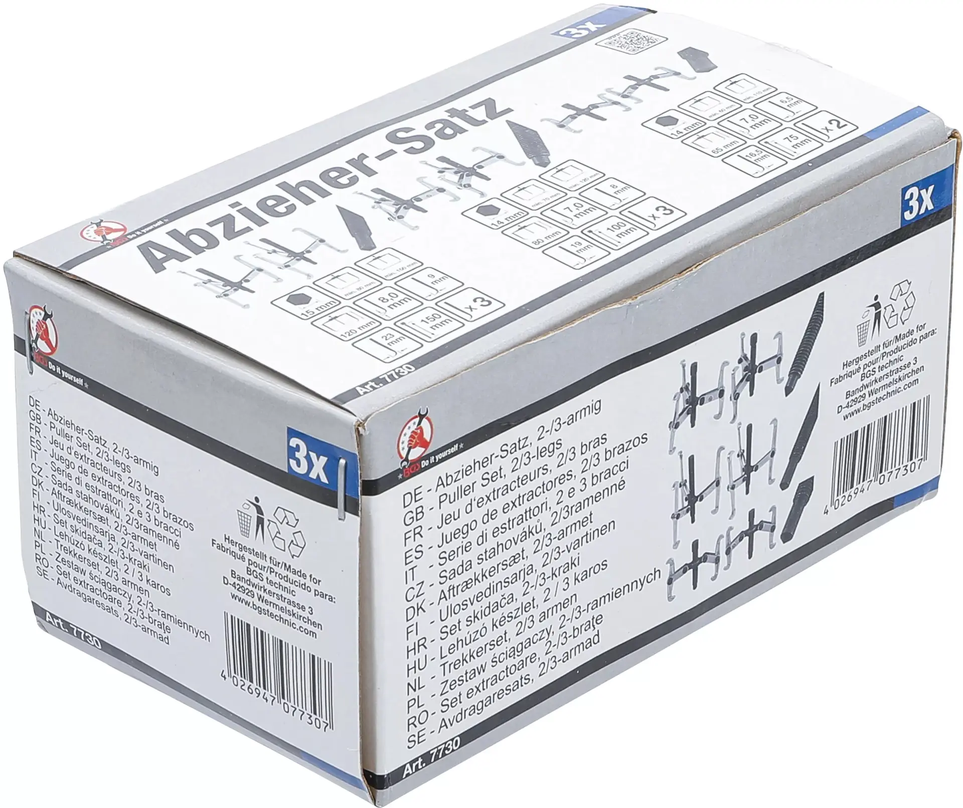 Sada stahováků Kraftmann BGS107730 obsahuje dvou- a tříramenné nástroje s rozpětím 75, 100 a 150 mm pro demontáž ložisek a ozubených kol. Robustní konstrukce zajišťuje spolehlivou práci při opravách automobilů i strojů.