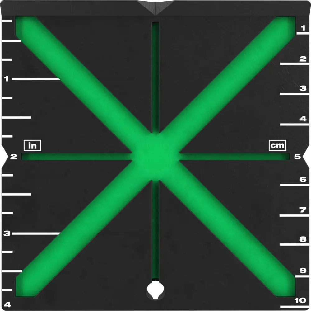 Terč je vybavený stupnicou v centimetroch a palcoch, ktorá umožňuje rýchle a presné odčítanie vzdialenosti. Výrazný farebný dizajn zabezpečuje dobrú čitateľnosť a ľahkú orientáciu pri práci na stavbe alebo v interiéri.