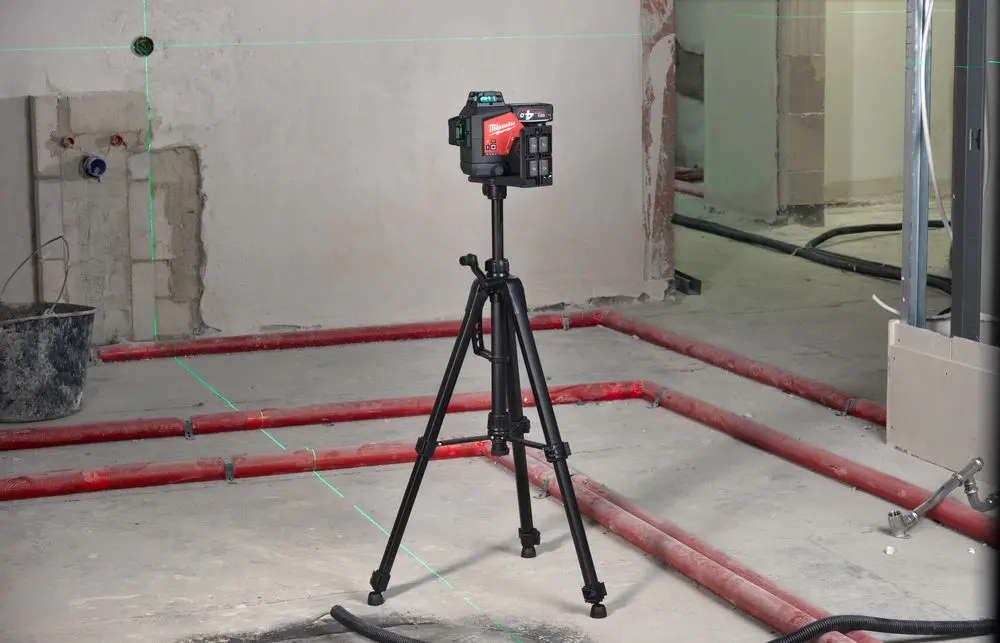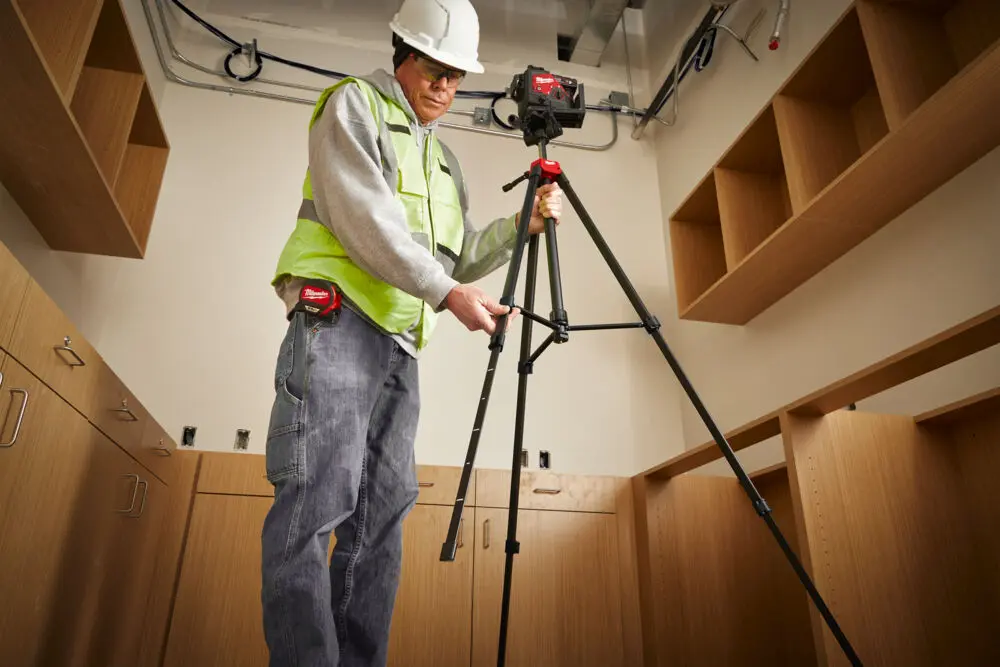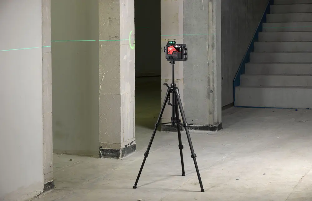 Laserový statív MILWAUKEE® s montážnym závitom 1/4" - Ideálny statív na nastavenie výšky horizontálnej laserovej čiary alebo na prípadné zdvihnutie lasera - Výška sa dá jednoducho nastaviť od 47 do 120 cm - Rozsah zdvíhania 29 cm na jemné nastavenie výšky - Laser možno namontovať na spodnú časť statívu pomocou 360° otočného prípravku (nie je súčasťou dodávky) na práce vykonávané v nižších výškach, ako je napríklad inštalácia zásuviek - Odolný a ľahký hliníkový rám pre dlhšiu životnosť