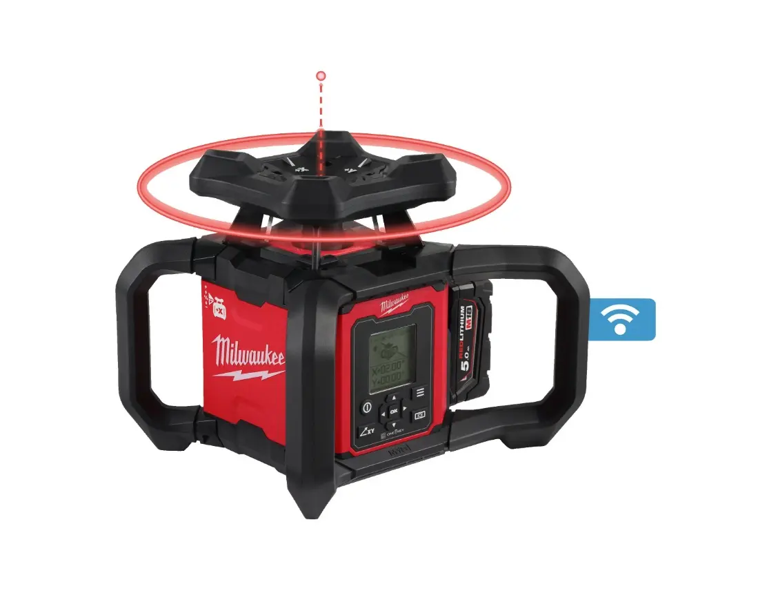Rotační laser Milwaukee M18 RLOHV1200-501C nabízí automatické nastavení sklonu, dosah až 1200 metrů a napájení akumulátorem 5,0 Ah pro dlouhou výdrž. Robustní konstrukce zajišťuje spolehlivost při práci v náročných podmínkách.
