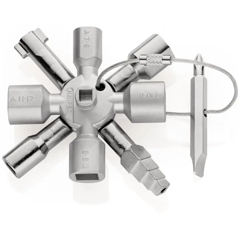 • Multifunkčný kľúč na ovládanie uzáverov z oblasti techniky budov (kúrenie a sanitárne zariadenia, klimatizačná a vetracia technika, elektrotechnika), zásobovanie plynom a vodou a uzatváracích systémov