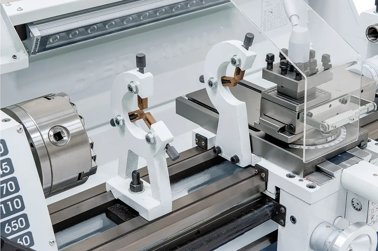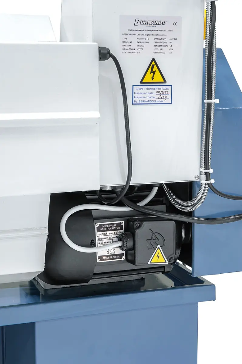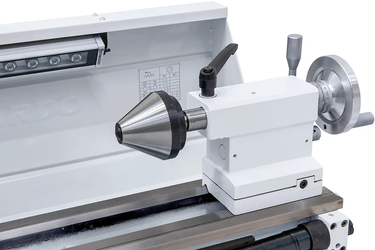 Stolový sústruh Bernardo Profi 650 G (400 V) s digitálnym odmeriavaním je štandardne vybavený vodiacim a ťažným vretenom na rezanie závitov alebo na automatické pozdĺžne a čelné posuvy