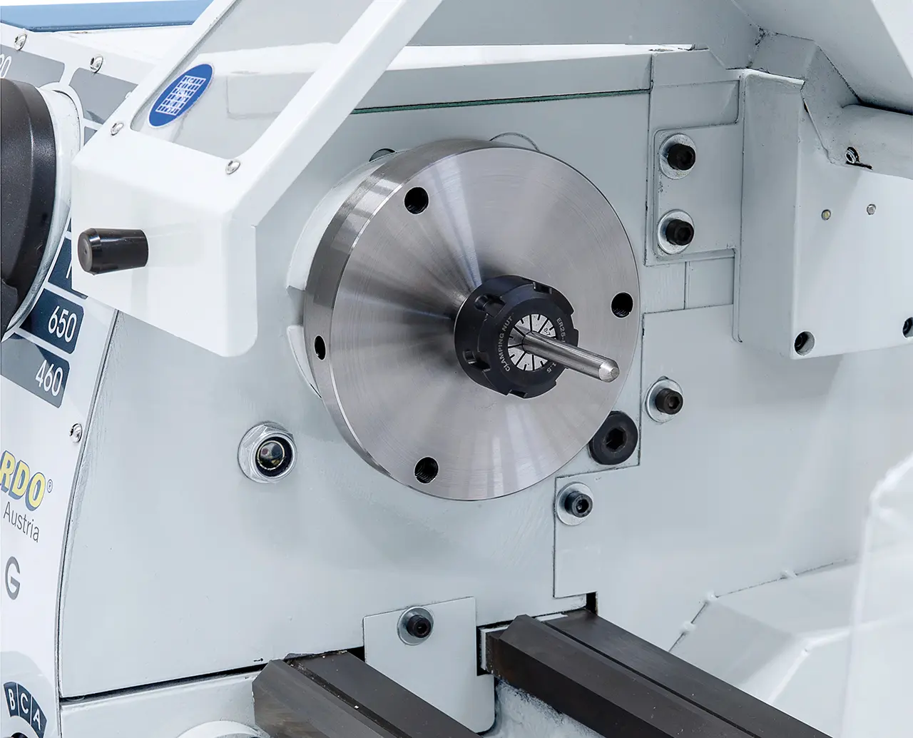 Uloženie vretena v presných kuželíkových ložiskách zaisťuje veľmi nízku hádzavosť (≤0,009 mm)