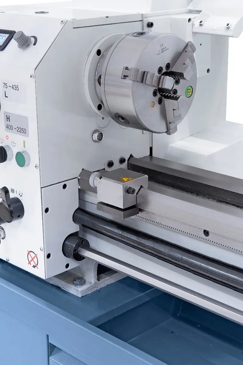 napájacie napätie 400 V, výkon 2,2 kW, točná dĺžka 880 mm, točný priemer nad lôžkom 320 mm, otáčky (2 st. - plynule) 75 ÷ 2250 U.min-1, prevedenie vretena DIN 55029, D1-4 “, priechod vretena 38 mm, kužeľ pinoly MK 3, zdvih pinoly 100 mm, rozmer