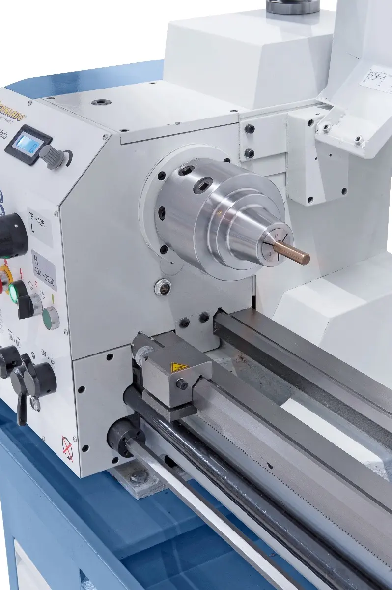 napájacie napätie 230 V, výkon 2,2 kW, točná dĺžka 880 mm, točný priemer nad lôžkom 320 mm, otáčky (2 st. - plynule) 75 ÷ 2250 U.min-1, prevedenie vretena DIN 55029, D1-4 “, priechod vretena 38 mm, kužeľ pinoly MK 3, zdvih pinoly 100 mm, rozmer