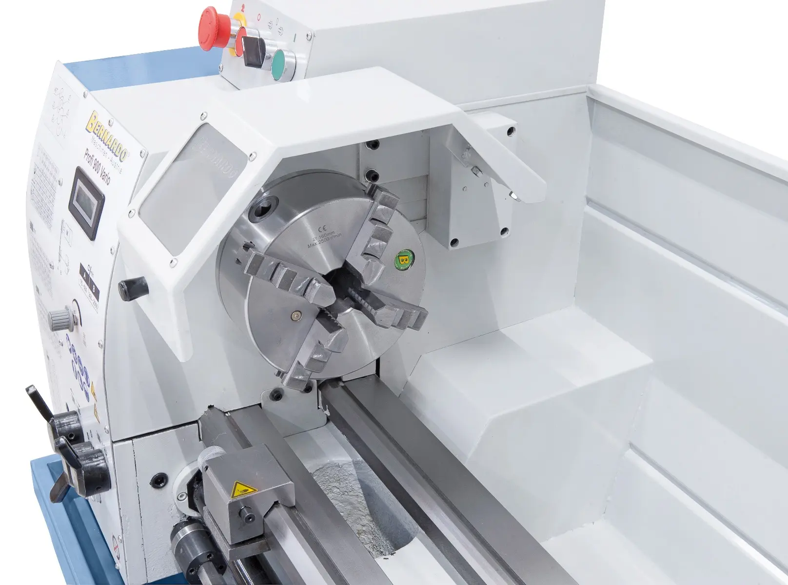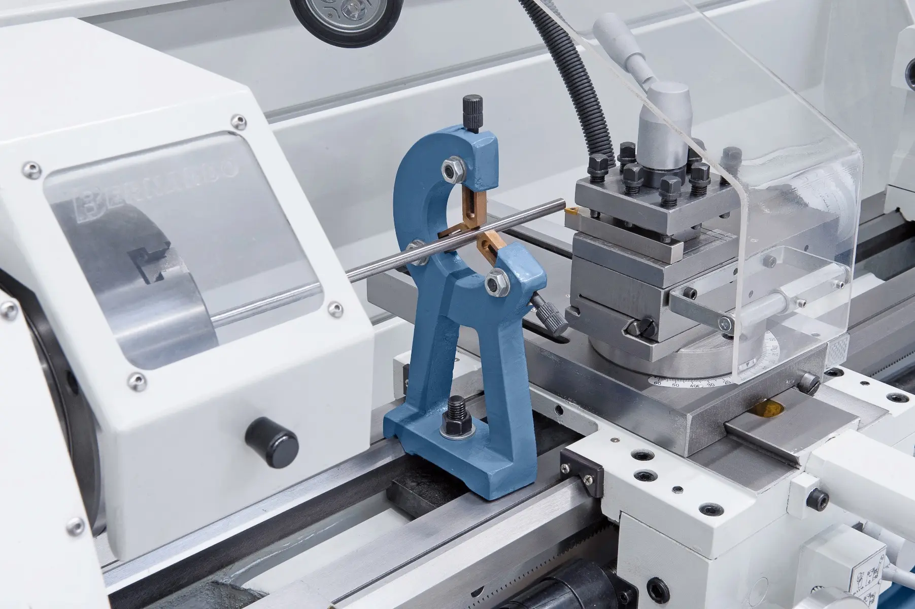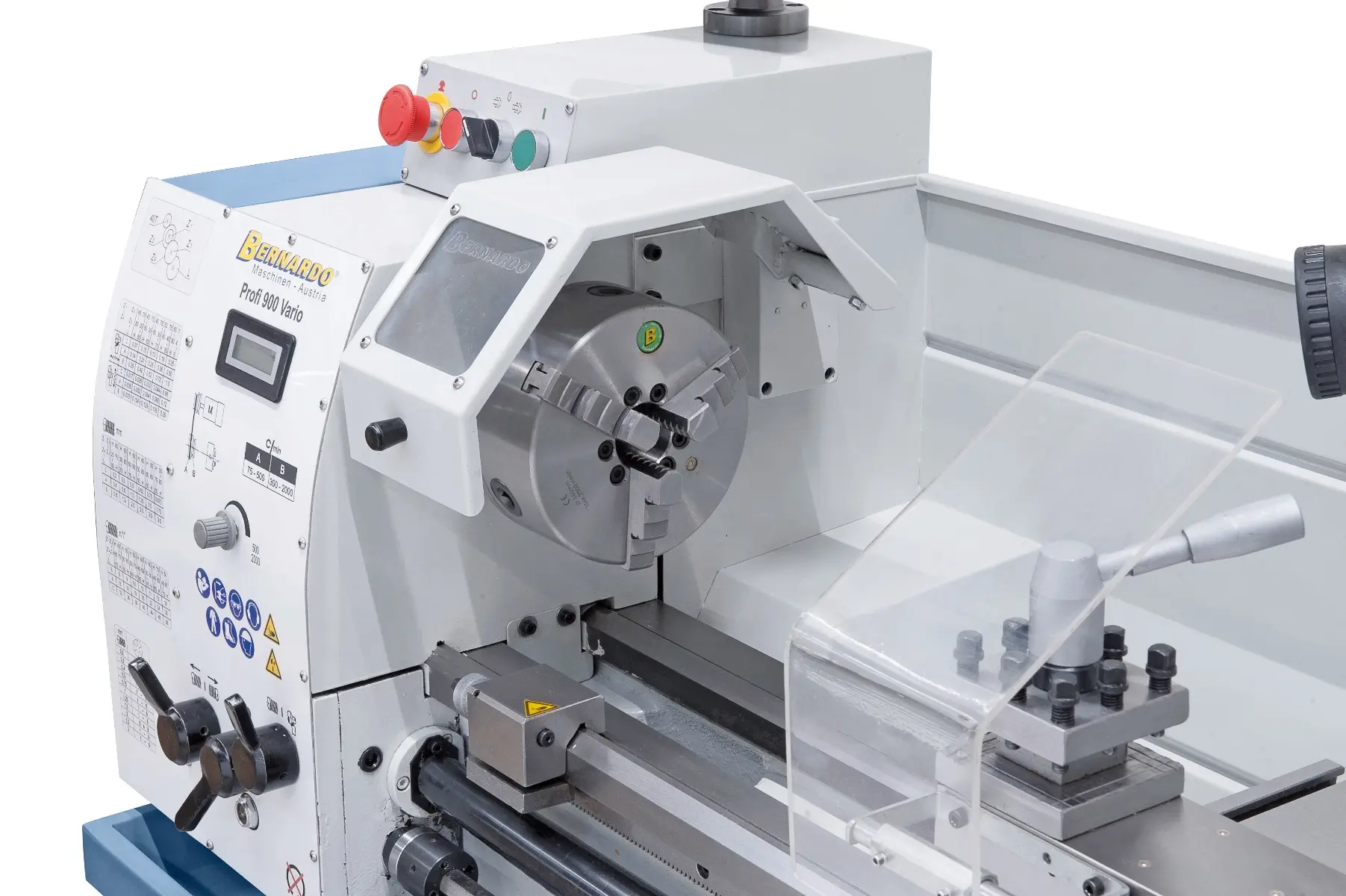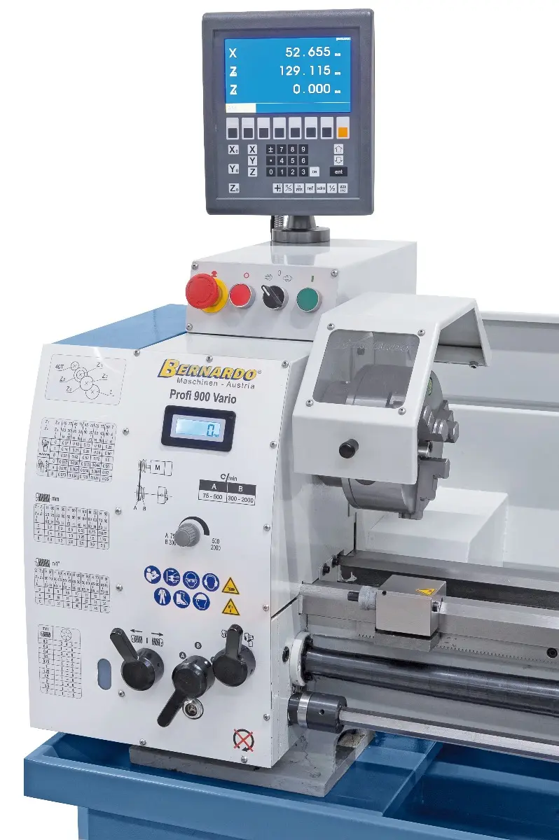 Presný sústruh s vodiacim a ťažným skrutkou Bernardo Profi Vario vybavenýdigitálnym odmeriavaním, mechanickou prevodovkou a frekvenčným meničom v štandardnej dodávke. Ideálna stroje pre náročného užívateľa