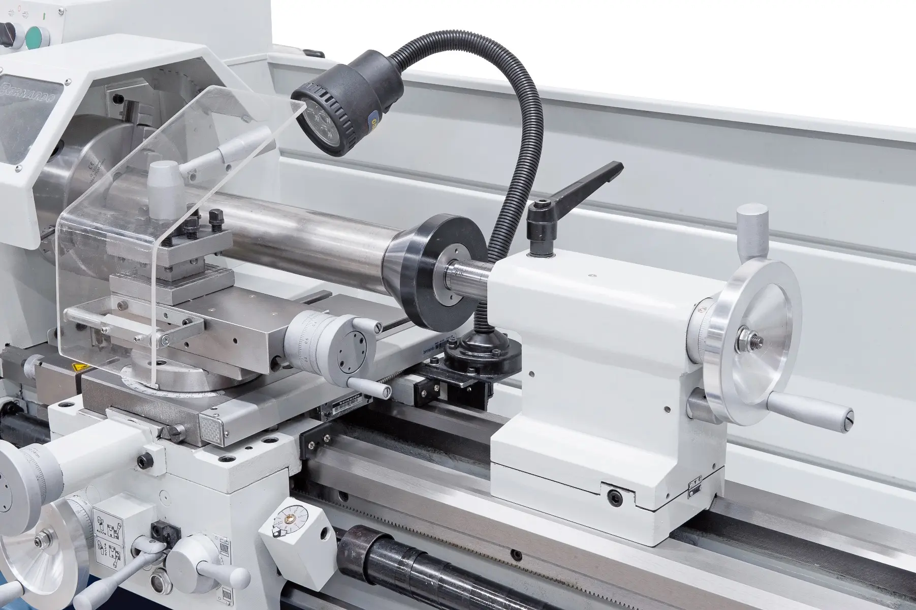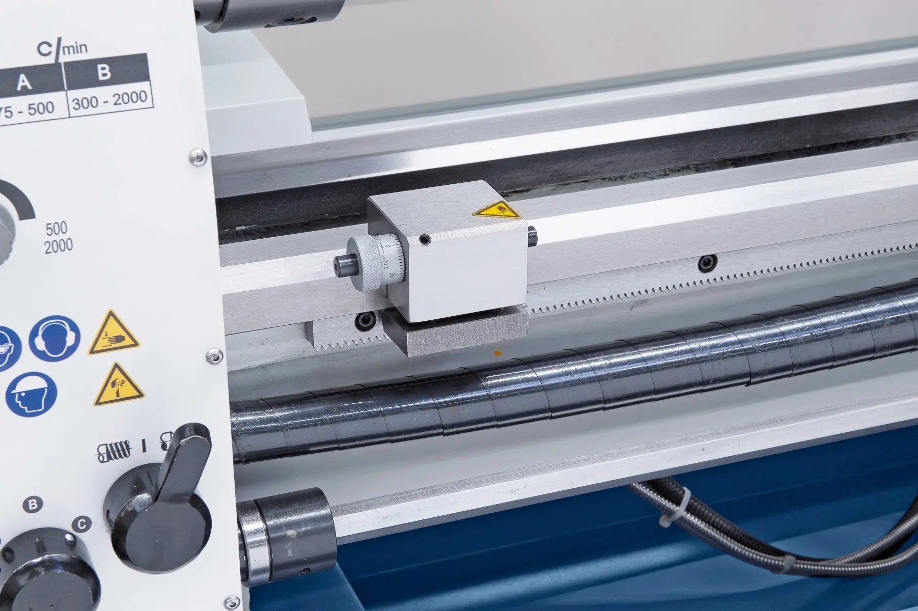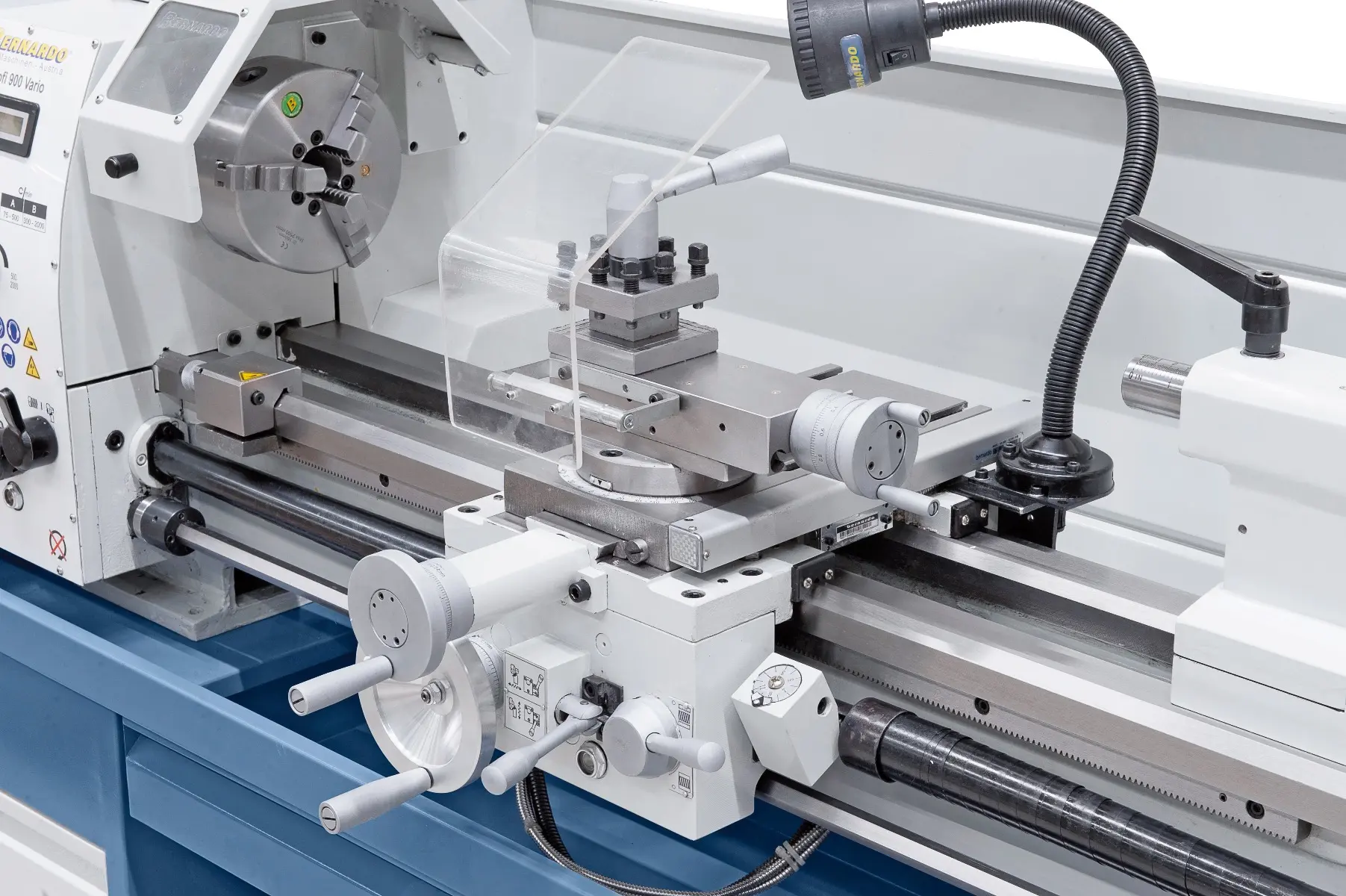 Presný sústruh s vodiacim a ťažným skrutkou Bernardo Profi Vario vybavenýdigitálnym odmeriavaním, mechanickou prevodovkou a frekvenčným meničom v štandardnej dodávke. Ideálna stroje pre náročného užívateľa