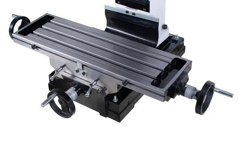Pohyb stola je ovládaný ručnými kolesami cez pohybové skrutky s maticami.