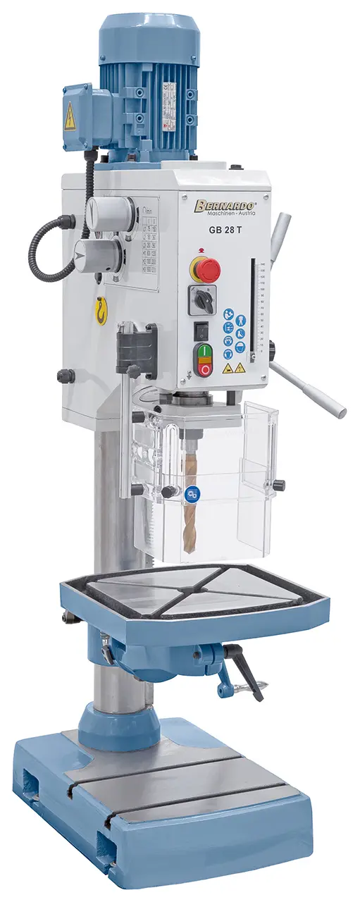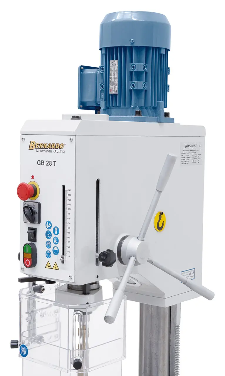 Robustný prevodová stĺpová vŕtačka Bernardo s mechanickou prevodovkou ponúkaprofesionálny výkon s vysokou presnosťou a veľkostí vŕtanie otvorov do 28 mma pre svoju kompaktnej konštrukcii je ideálnou voľbou pre remeselnej výrobua zámočnícke dielne