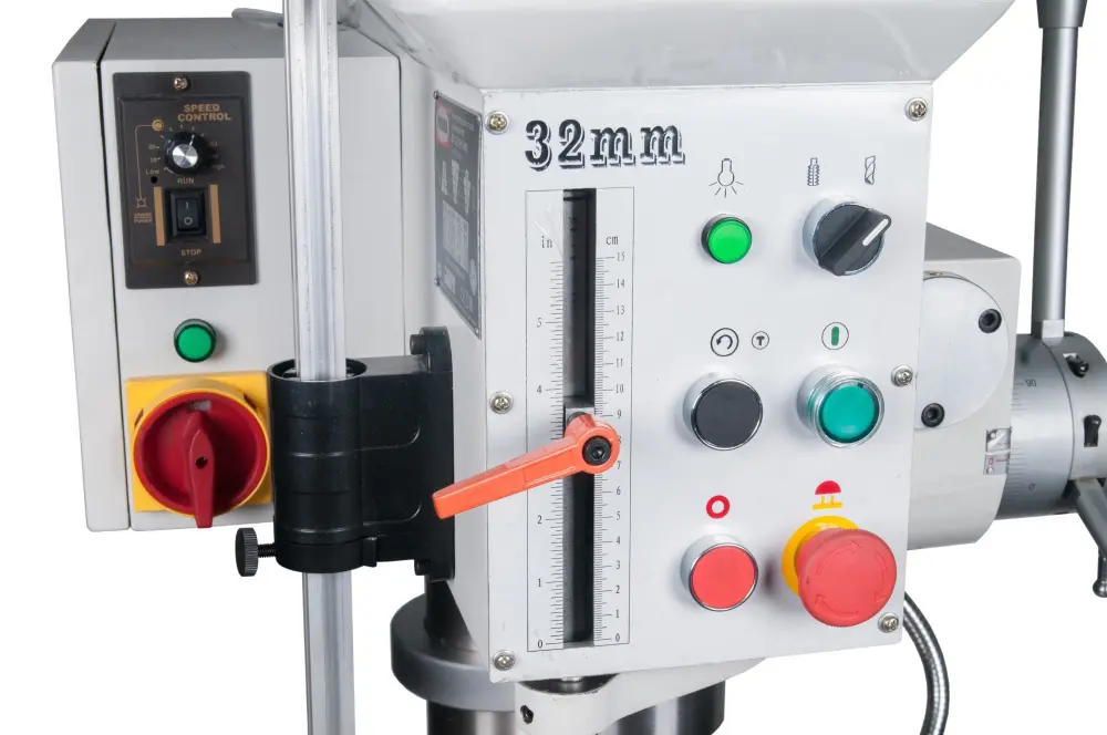 Niektoré typy priemyselných vŕtačiek sú ďalej vybavené nožným spínačom, reverzáciou otáčok a strojným posuvom
