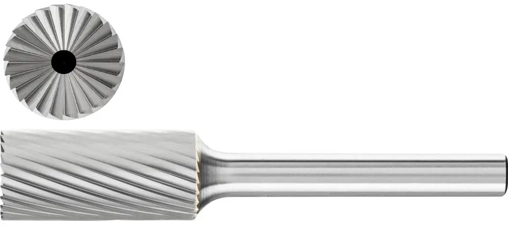 Stopkové frézy Pferd z karbidu volfrámu pre všeobecné použitie, ozubenie Z3 univerzálny stredný, valcový tvar ZYAS s čelným ozubením, priemer stopky 6 mm