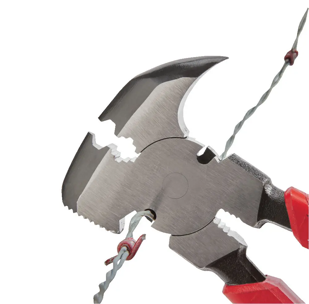 • Viacúčelová konštrukcia so 6 rôznymi funkciami vrátane vyťahovača sponiek, klieští na sponky, štiepačiek na plotový drôt, vyťahovača plotového drôtu, krimpovacieho kladiva na plotový drôt a univerzálneho kladiva