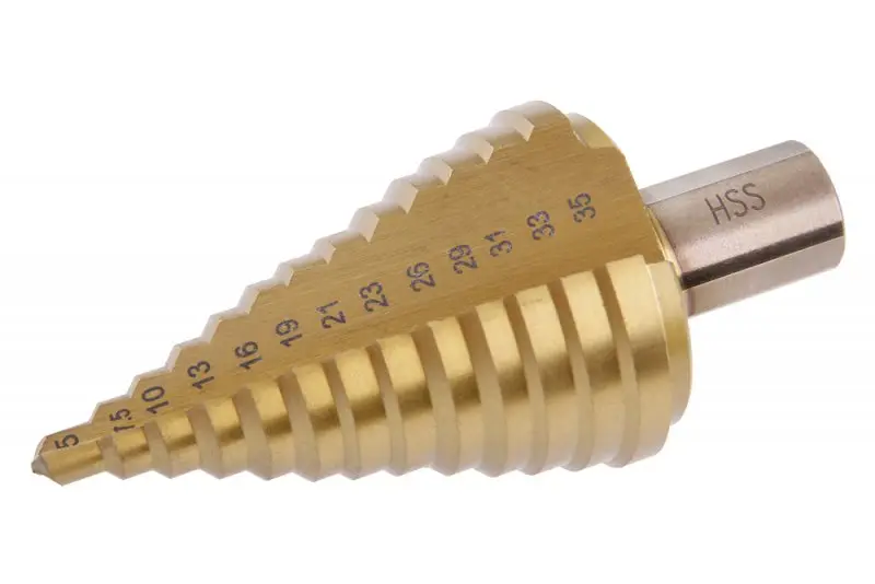 Stupňovité vrtáky HSS 5-35 mm, 13 stupňov s titánovým povlakom