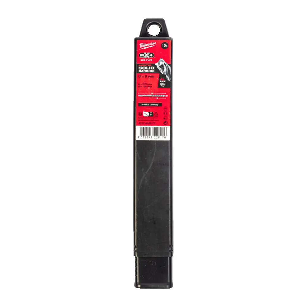Tato sada obsahuje 10 kusů vrtáků SDS-Plus MX4 s rozměry 8 x 150 x 215 mm. Vrtáky jsou určeny pro použití s příklepovými vrtačkami vybavenými upínáním SDS-Plus, což zajišťuje rychlou výměnu a pevné uchycení během práce.