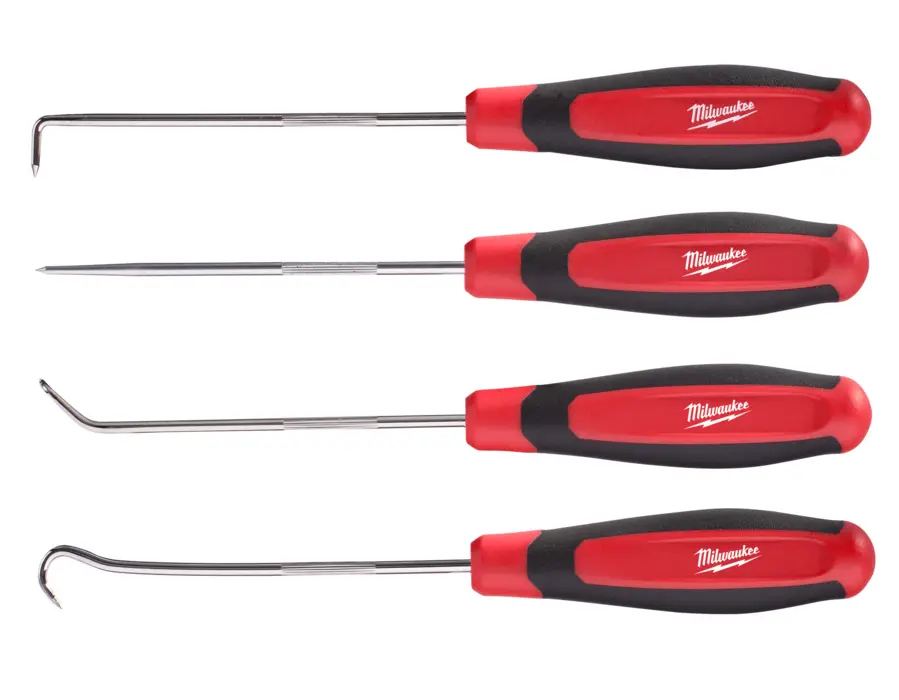 Sada háků a vytahováků Milwaukee obsahuje čtyři nástroje, které jsou navrženy pro manipulaci s těsněním, O-kroužky, pružinami a dalšími drobnými součástkami. Každý kus v sadě má specifický tvar hrotu, což umožňuje přístup i do hůře dostupných míst a usnadňuje práci při montáži nebo demontáži.