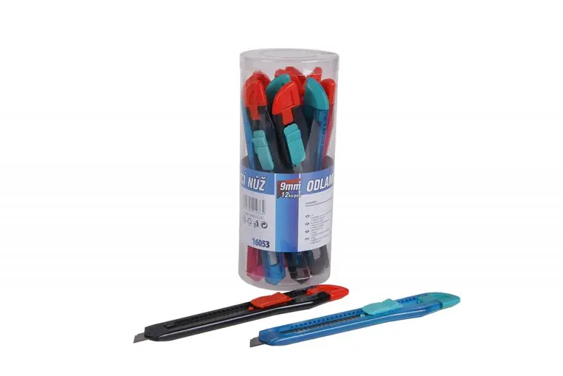 Táto súprava obsahuje 12 kusov univerzálnych nožov so zasúvateľnou čepeľou so šírkou 9 mm. Každý nôž je uložený v praktickom boxe na jednoduché skladovanie a prenášanie. Nože sú vhodné na bežné rezanie papiera, kartónu, fólie a iných materiálov v domácnosti, kancelárii a dielni.