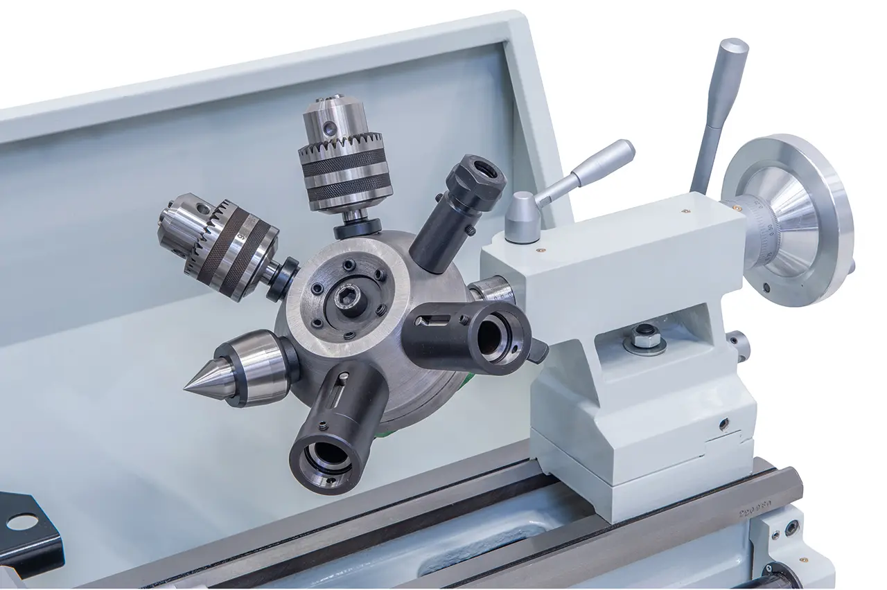 Sústruh Bernardo s digitálnym odmeriavaním v 3 osách je štandardne vybavený vodiacou skrutkou na rezanie závitov, automatickým pozdĺžnym a priečnym posuvom, 12-stupňovou prevodovkou