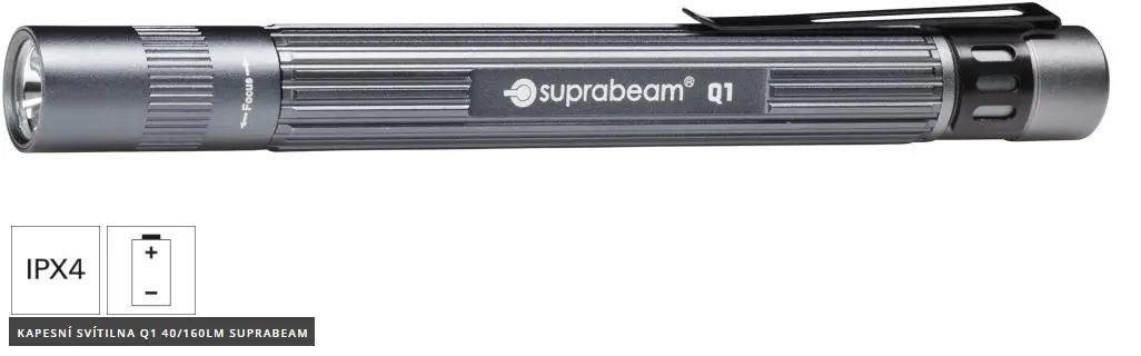 Kapesní svítilna Suprabeam Q1 nabízí světelný výkon 40 nebo 160 lumenů, kompaktní rozměry a jednoduché ovládání, což oceníte při každodenním použití i na cestách.