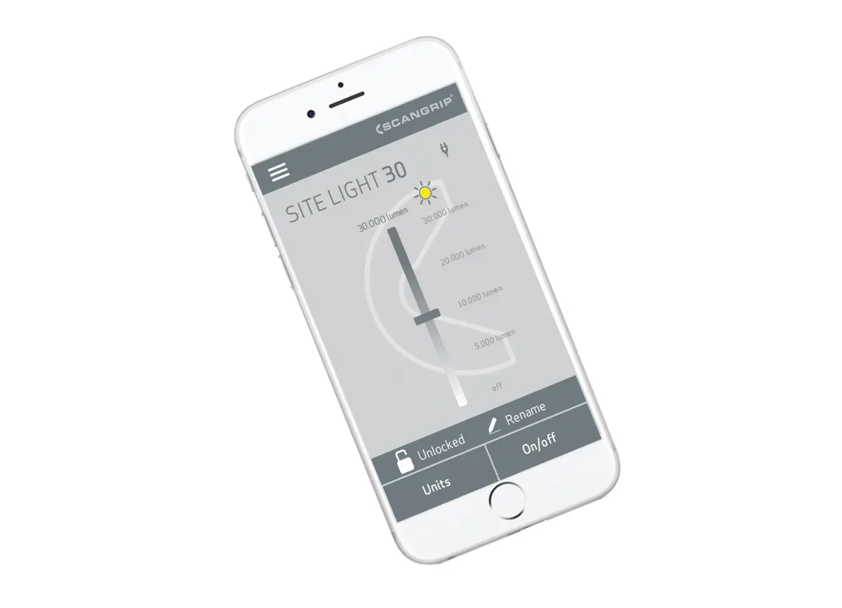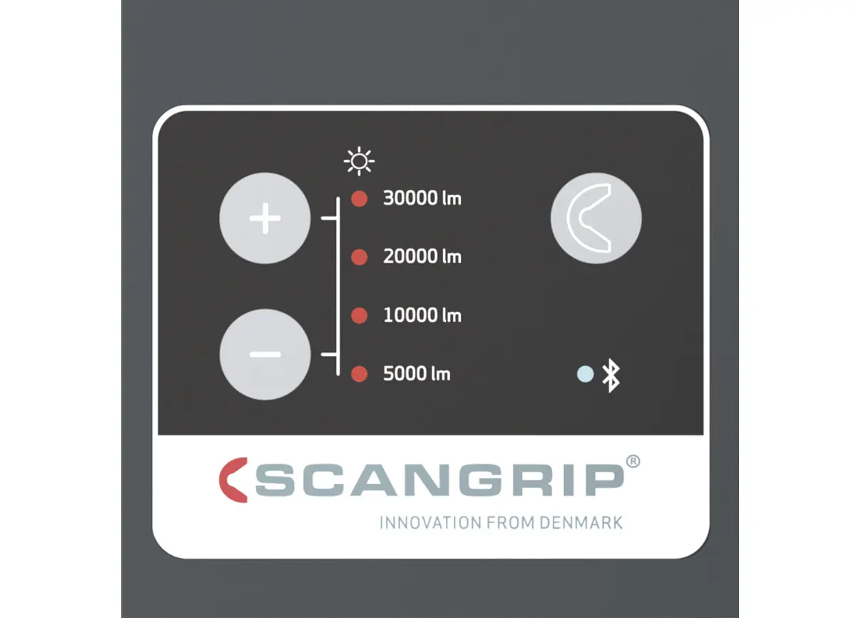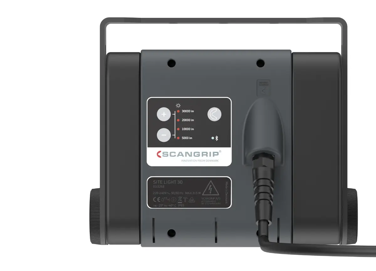 SCANGRIP SITE LIGHT 30 - vysoce výkonný LED reflektor, až 30 000 lumenůSCANGRIP SITE LIGHT 30 je extrémně výkonný reflektor s nejmodernější LED technologii se světelným tokem až 30 000 lumenů a úhlem paprsku 120°. Zajišťuje tak perfektní osvětlení velké pracovní oblasti.Pracovní světlo SITE LIGHT 30 je vybaveno "stmívačem" pro regulaci intenzity světla a ovládáním pomocí mobilního zařízení přes bluetooth.Zabudovaná rukojeť a nízká váha zajistí snadnou manipulaci. Reflektor je zcela odolný vůči prachu a vodě (IP65) a je určen pro použití v rozmězí mezi -25°C - 40°C. Díky vysoce kvalitním součástkám a aktivnímu chlazení má reflektor dlouhou životnost a udržuje vysoký výkon po celý pracovní den.Výhody:Nízká váha v porovnání s konkurencí - 4,95 kgObrovský světelný tok až 30 000 lumenůOvládání pomocí Bluetooth přes mobilní zařízeníTechnické parametry:Zdroj světla: 432 x SMD LEDSvětelný tok: 5 000 - 30 000 lmCCT: 6 000 KCRI: Ra>80Hmotnost: 4 950 gStupeň krytí: IP65Pracovní napětí: 220 - 240 V AC - 50 / 60 HzÚhel paprsku: 120°Pracovní teplota: -10°C až +40°CRozměry: 278 x 241 x 160 mm