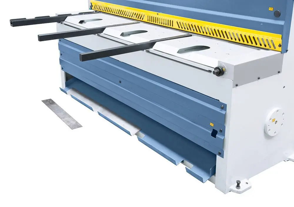 - Spotreba energie [W]: 7 500 - Max. dĺžka rezu [mm]: 3 060 - Max. hrúbka plechu 400 N.mm-2 [mm]: 4,0 - Uhol rezu [°]: 1,5 - Počet zdvihov [n.min-1]: 31 - Motorom nastaviteľný zadný doraz [mm]: 750 - Zadný doraz [mm]: 750 -- - Posun [mm]: 305 -- - Výška stola [mm]: 830 - Hĺbka stola [mm]: 450 - Podporné ramená [ks]: 3 - Rozmery stroja (d x š x v) [mm]: 3 770 x 2 250 x 1 400 - Hmotnosť [kg]: 4 000 Stolové nožnice Bernardo MTR 3060 x 4 NCC Profesionálne mechanické stolové nožnice, s riadením Fuji NC s dotykovou obrazovkou. Vysokokvalitná a robustná konštrukcia s motorizovaným zadným dorazom. - Motorizované nožnice na plech na strihanie širokej škály materiálov, ako sú oceľové plechy, mosadz, hliník, meď, ... - Robustná zváraná konštrukcia pre maximálnu tuhosť a presnosť - Koncepcia stroja s pevným baranom uloženým na valčekových ložiskách a bronzovým vedením -- - NC ovládanie stroja Fuji na užívateľsky prívetivom dotykovom paneli - Odoberanie plechu je možné buď na
