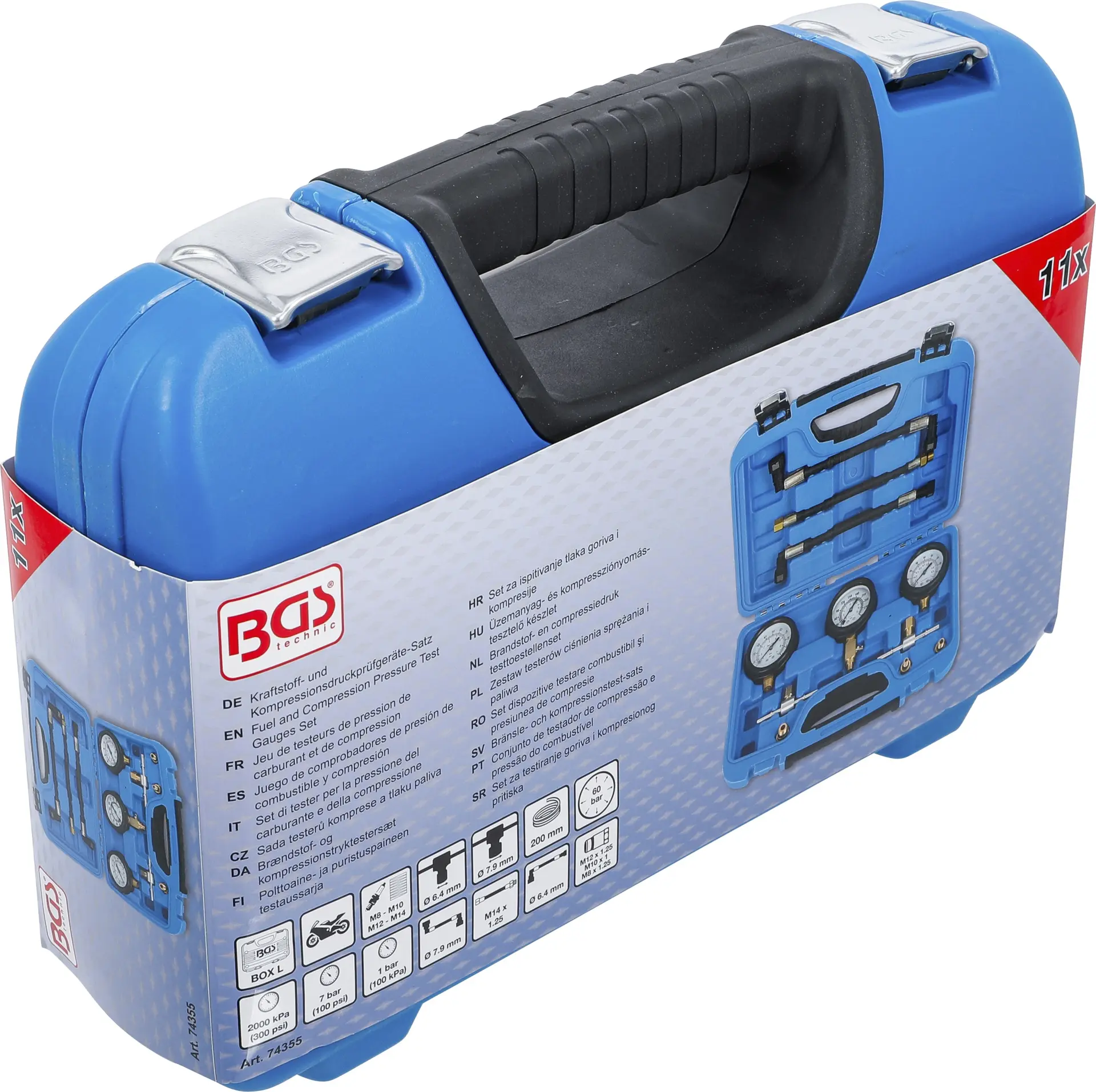 Testery kompresie a tlaku paliva BGS1074355 pre motocykle (Sada 11 dielov) (BGS1074355)
