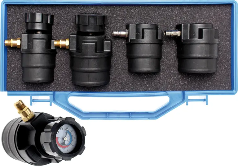 Sada čtyř adaptérů s rozsahem průměru 55–70 mm je určena pro diagnostiku turbodmychadel a obsahuje manometry pro přesné měření tlaku. Kompatibilita s různými typy turbodmychadel usnadňuje servisní práce.
