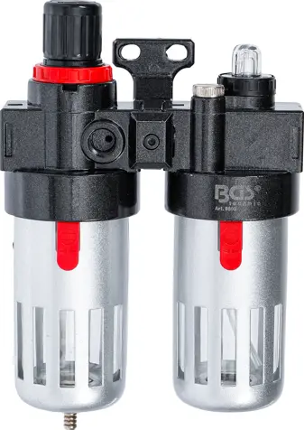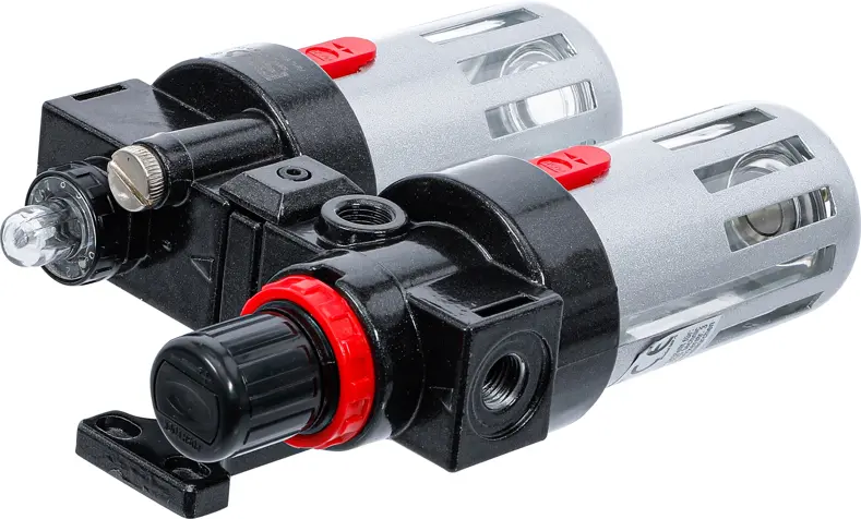 Dvojitá údržbová jednotka s rozsahem tlaku 0–10 bar a připojením 1/4" zajišťuje filtraci a regulaci vzduchu v pneumatických systémech. Vhodná pro průmyslové i dílenské použití.