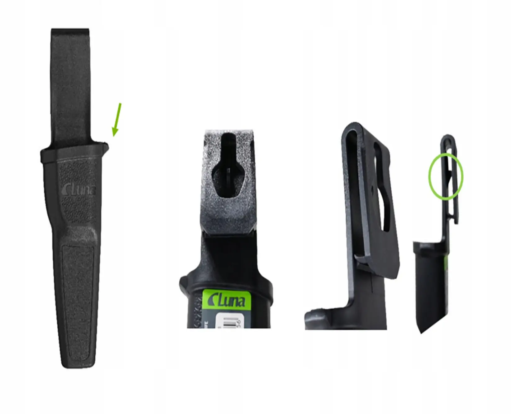 - Puzdro noža má praktický klip, vďaka ktorému ho možno ľahko pripevniť na opasok alebo gombík