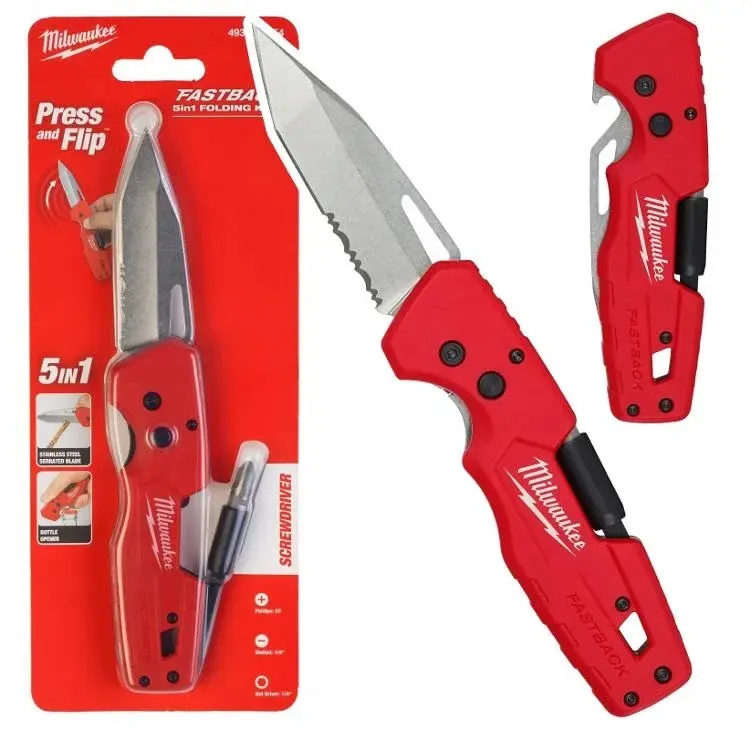 Zavírací nůž Milwaukee FASTBACK™ 5 v 1 nabízí rychlé otevírání jednou rukou, vyměnitelnou čepel, šroubovák, páčidlo a odizolovač drátů. Robustní konstrukce zajišťuje dlouhou životnost při každodenním používání.