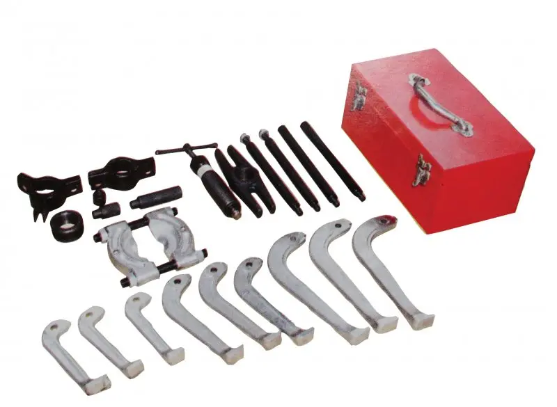 Súčasťou je hydraulický piest, ktorý zabezpečuje rovnomerný a silný tlak, čím sa minimalizuje riziko poškodenia demontovaných dielov. Vďaka univerzálnym čeľustiam možno sťahovák používať na rôzne priemery a tvary, čo zvyšuje jeho užitočnosť v dielni a servise.