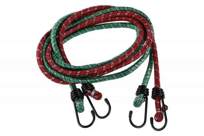 Každá gumička je na oboch koncoch vybavená kovovými háčikmi, ktoré uľahčujú rýchle a pevné upevnenie. Vďaka pružnému materiálu sa gumička ľahko prispôsobí tvaru nákladu a udrží ho na mieste aj pri jazde po nerovnom teréne.