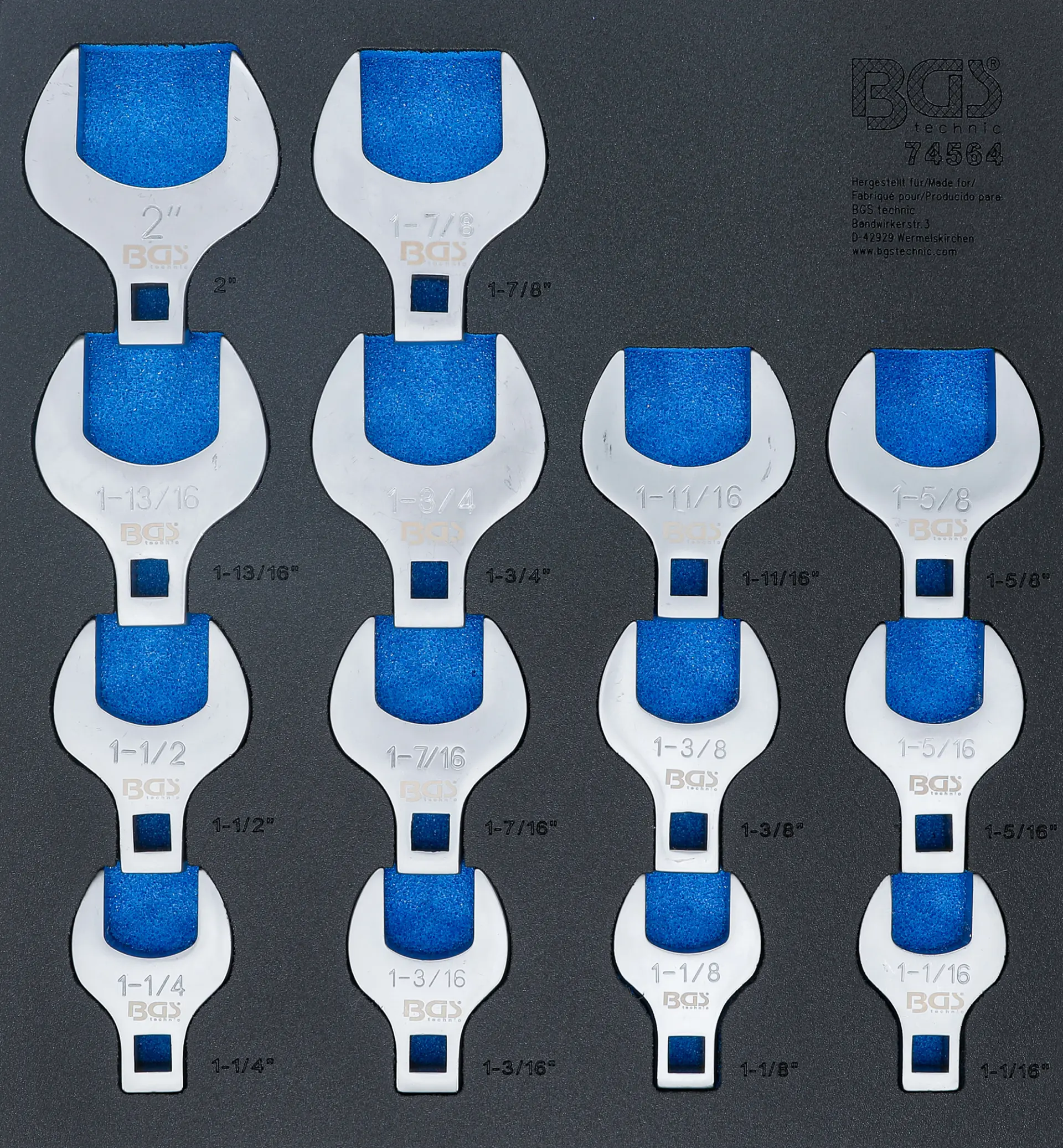 Vložka do diel.voz. 2/3: BGS 74564 Stranové kľúče Growfoot 1/2" 1 1/16 ÷ 2", palcové (BGS1074564)