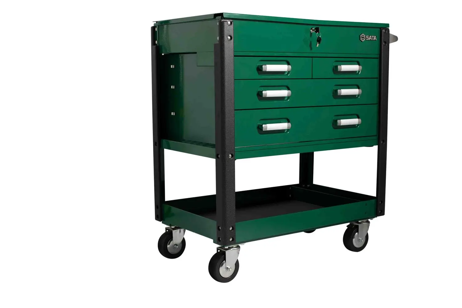 Vozík na nářadí SATAST95119SC je vhodný pro domácí kutily i profesionály, kteří potřebují mít své nářadí přehledně uspořádané a vždy po ruce. Čtyři zásuvky a mobilní provedení z něj dělají praktického pomocníka pro každodenní práci.