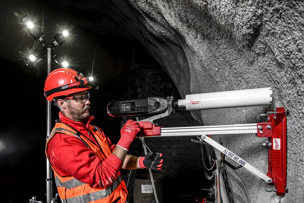 Stojan na diamantovou jádrovou vrtačku MX FUEL™ Milwaukee MXF DR255TV zajišťuje stabilní uchycení a přesné vedení vrtání, vhodný pro náročné stavební práce s vysokou zátěží.