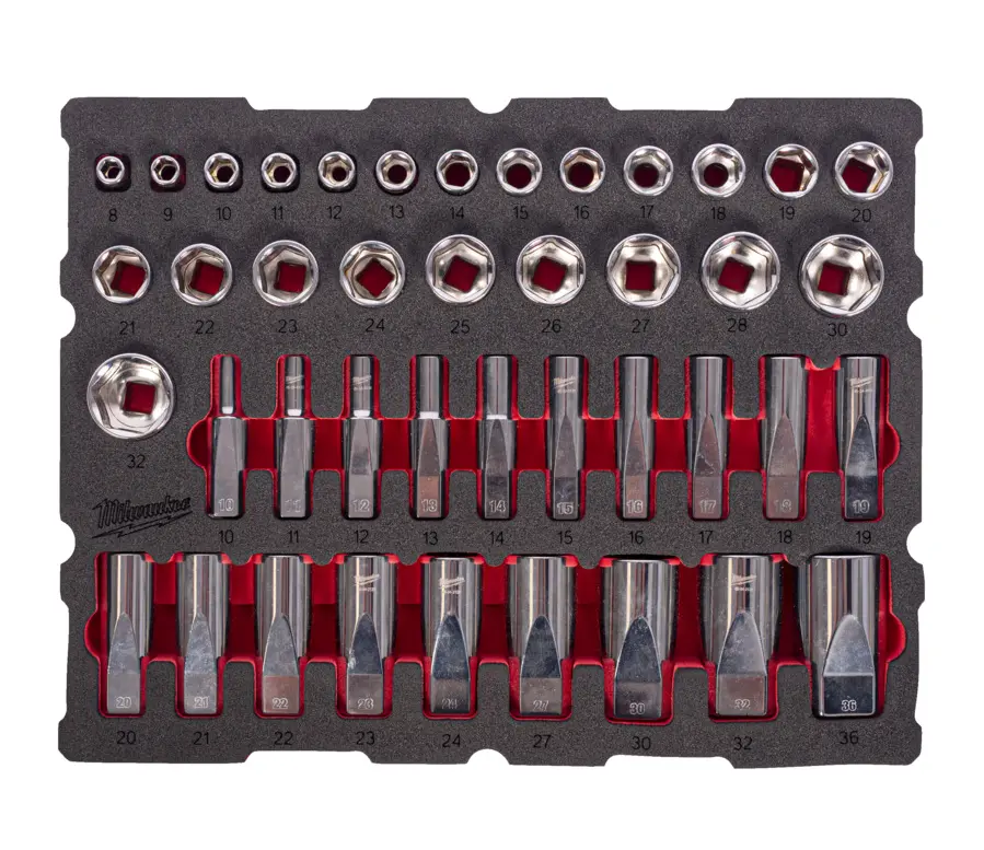 Vybavená penová vložka Milwaukee do PACKOUT boxu, nástrné hlavice 1/2", 42 ks náradia, 4932501869