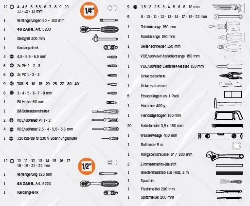 Kufr nářaďový 1/4"+1/2" PROJAHN ELEKTRO 128 dílů