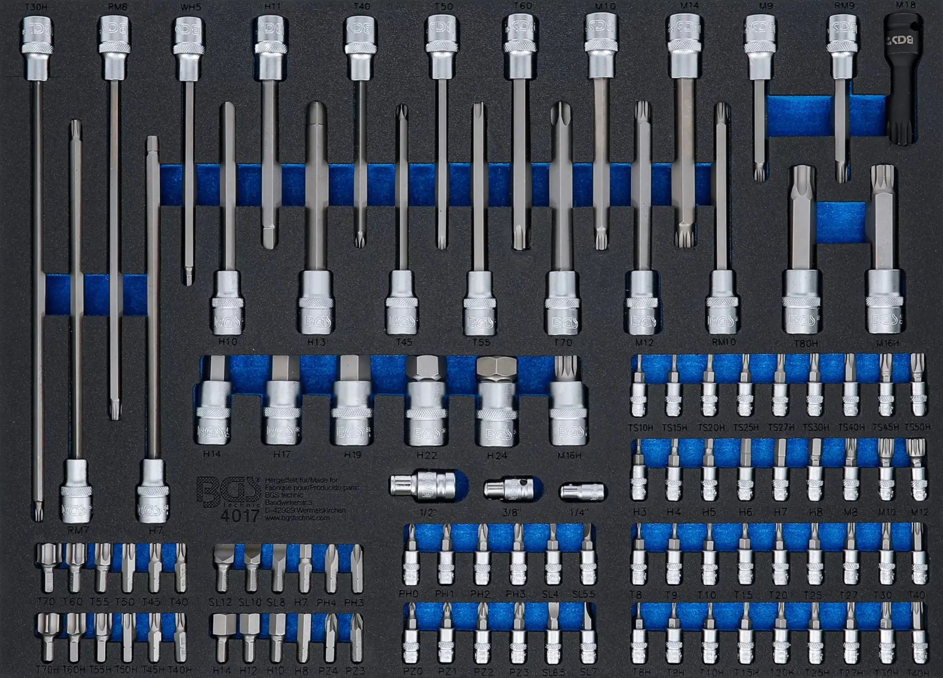 inbus: 3 - 4 - 5 - 6 - 7 - 8 mm