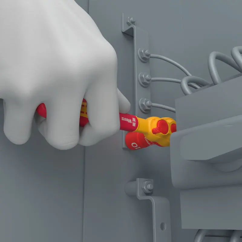Individuálne testovanie náradia Zyklop pre elektrikárov pri napätí 10 000 voltov podľa normy IEC 60900 zaručuje bezpečnú prácu pod napätím až 1
