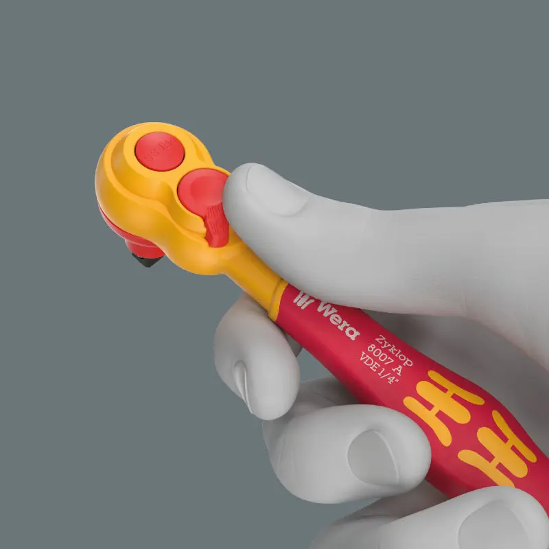 22dielna sada račne 1/4" s izoláciou VDE - vďaka extrémne štíhlej konštrukcii, jemnému ozubeniu s 80 zubmi a krátkemu uhlu návratu jednoduchú prácu aj vo veľmi stiesnených priestoroch