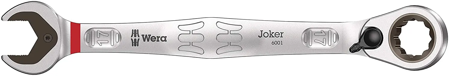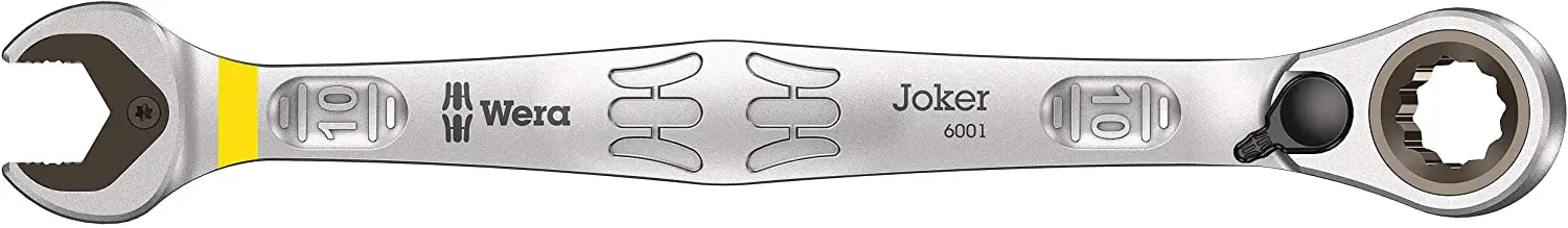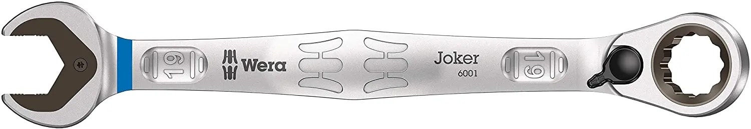 Sada čtyř očkoplochých ráčnových klíčů Wera Joker 6001 s rozsahem 10–19 mm nabízí vyhnuté provedení a ráčnový mechanismus pro rychlejší práci v těžko přístupných místech. Robustní konstrukce zajišťuje dlouhou životnost a spolehlivost při každodenním
